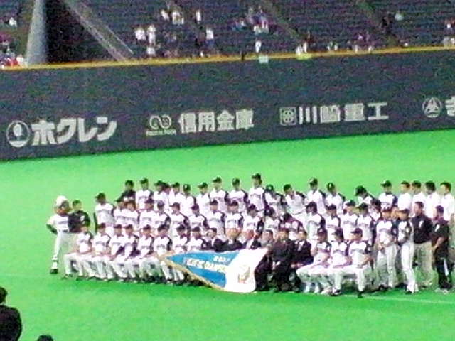いってきまーす^^ 写真は第二戦の試合後、来期のカレンダー用のスタッフこみこみの集合写真の撮影現場。 最後列の頭一個突き出てるのっぽさんがダルビッシュ。 写メとるグルーピーのおねいちゃんたちに混ざって、私も写真を撮りました(^o^) おねいさんA 「でもさあ、もう きゃ〜〜〜 って気分じゃないよね」 おねいさんB 「だよねー、年下過ぎるよね〜 気分はお姉さん?」 私を含め、群れなすダルの明子姉ちゃん 負け試合の所為かみんな愛想無し。当たり前か。 でもヒルマン監督に 「ひるま〜〜〜ん!」って声掛けたら、手を振ってくれたのが嬉しかったです。 |