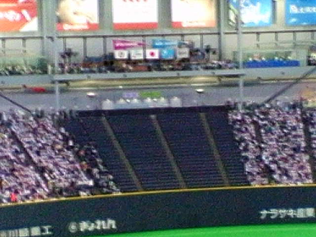 昨日、日ハム×ロッテ クライマックスシリーズ最終戦 ロッテ先発成瀬に対して、日ハム先発はダルビッシュ エース対決の屈指の好カードでプレイボール。 第四戦で負けた日ハムはおととい緊急招集をかけて全員練習したとか。 対して意気軒昂なロッテ。 キャッチャーにしてホームランバッター、里崎にして 「手ぶらじゃ帰らない」 どちらも後がありません。 が、明けてみると日ハムのワンサイドゲームになってしまった意外な展開。 絶好調の成瀬を見事打ち崩し、成瀬降板。 五回でダルビッシュも二連続ヒットを喰らい、降板。 日ハムは総力戦でした。 三戦目で投げたグリンを中継ぎに起用、最後は守護神マイケル 結局、6−2 で逃げ切りました。 今年も優勝に立ち会ったS夫妻に妬みメールを送る めるめる めるめる 「セギノールのホームランでみんな号泣したよう〜〜〜」 だそうです。 四番でありながら今年一本もホームランを打てず 監督を逆ギレさせていたほど打てなかったセギノールがホームラン・・・・ 何とこれが今年の第一号ホームランでした。 なんとも以外だったのは、試合後、両チーム、両者の五日間の健闘を讃えて、歩み寄り、ダイアモンドで両チーム選手、握手。 そしてハグ。 ロッテ応援席から巻き起こる「ヒルマン」コール! 観客席の応援団もからもお互いの健闘を讃えあう暖かなエールが送り送られ。 まるで高校野球みたいでした。 プロの試合でこんな光景を見るのは初めて。 そして二回目のビール掛けの乱痴気騒ぎ。 選手用の地下駐車場を防水シートで覆い 寒い思いをせぬようになんと暖房まで入れて、と念の入った球団側の配慮でした。 さて、10/27からは日本シリーズだ! いくぞ頂点 V2まっしぐら! ちなみに、昨日、近所のスーパーはどこもガラガラでした。 優勝を「シンジテイマシタ〜」なのはヒルマン監督だけではなかったようです^^ クライマックスシリーズのスポンサーはヨドバシカメラなので 当然ヨドバシカメラ札幌店も優勝記念セールです。 写真はちと遠いけど札幌ドームの燦然と輝くWチャンピオンフラッグ