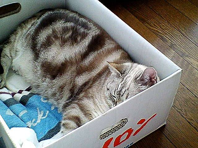 冬物バーゲンを冷やかしにファッションビルと札幌駅周辺のショッピングモールに行ってきました。 初売りのときにあらかた荒らしつくされていた所為か、たいした収穫無し。 残念 帽子屋で松の葉のような色の濃い緑のベレー帽 と 初めて入ったショップで黒のカシュクールタイプのカットソー購入 黒のカシュクールはキャミの上に羽織るとちょっとダンサーみたいに見えて (メタボな下腹はあえて視野に入れず) 我ながらご満悦^^ 14日以降のセカンドバーゲンと梅春物の立ち上がりシーズンがまた愉しみ 写真は1/2の猫 猫って猫時間を過ごしてるよなあ、ってなんとなく思い。 盆も暮れも正月も、人の世のイトナミでしかないんだよな、きっと メロン箱は彼女(メスなんですよ)のセーフハウスその1 |