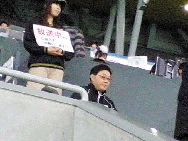 写真はドームの放送席