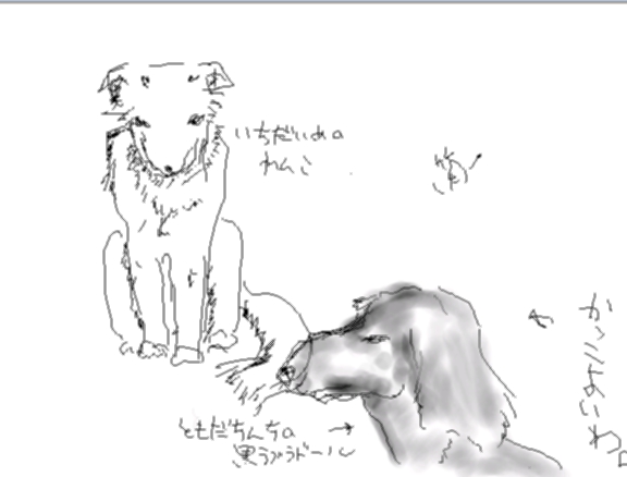 おしゃべりから 御互いの「おもいでわんこ」を描きました^^