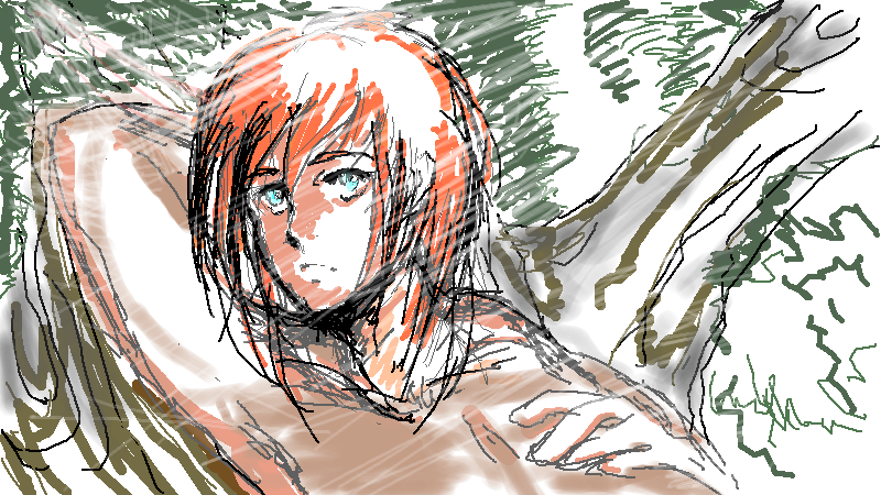 新緑の季節にふさわしい絵ですね。 誰が見ても眩しい木漏れ日です。 髪の色からすると、紅(こう)もまたトリトン族なのでしょうか。