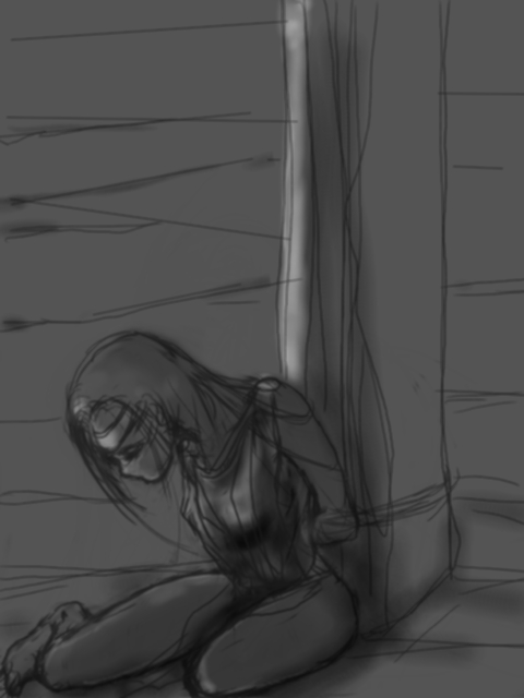 当初全裸から描き始め着色してあまりにヤバヤバなので着せてなおかつモノクロに